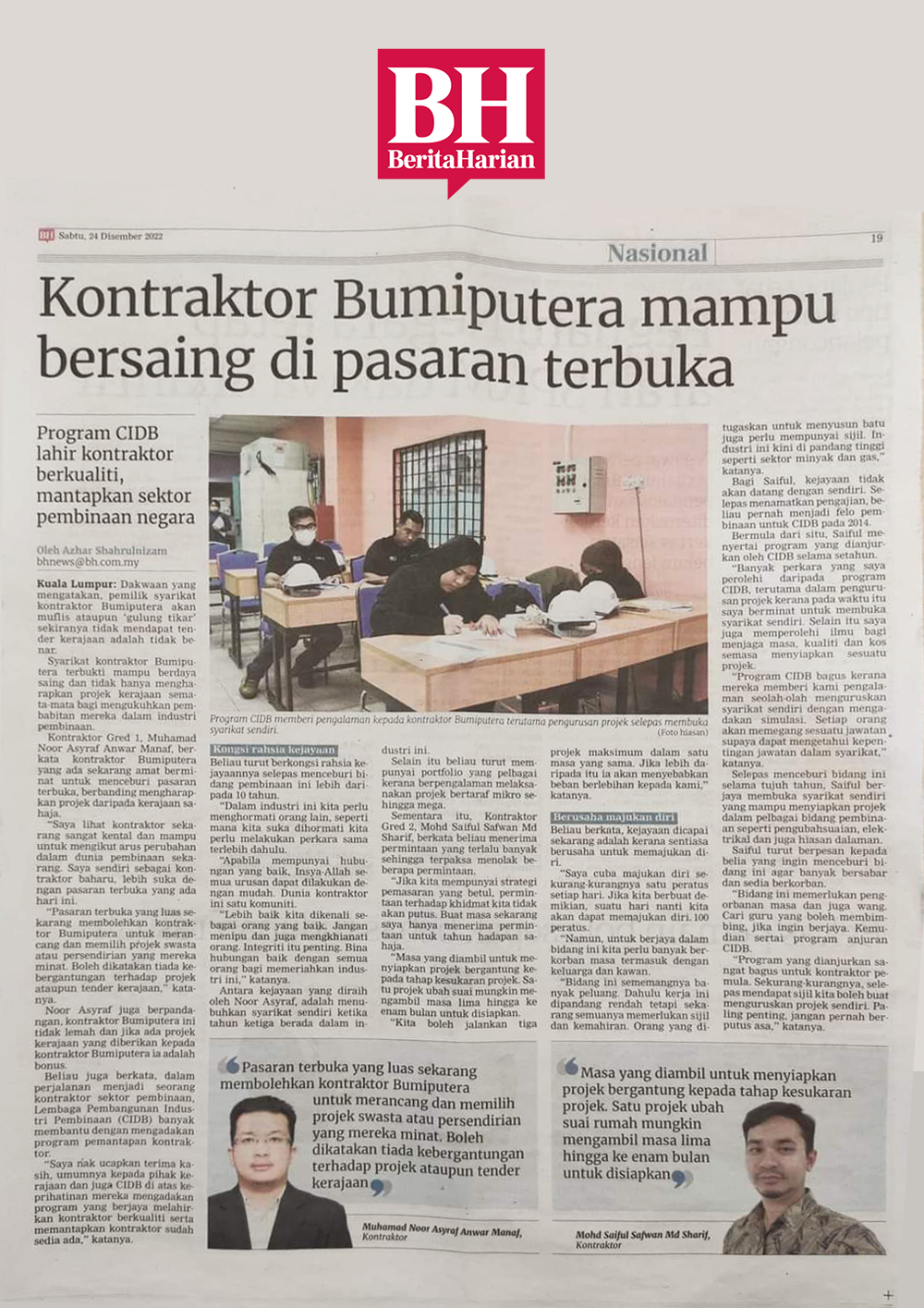 The company story was published in the Berita Harian Newspaper on 24 December 2022. Our company director has shared his experience, knowledge and motivation in the construction field.